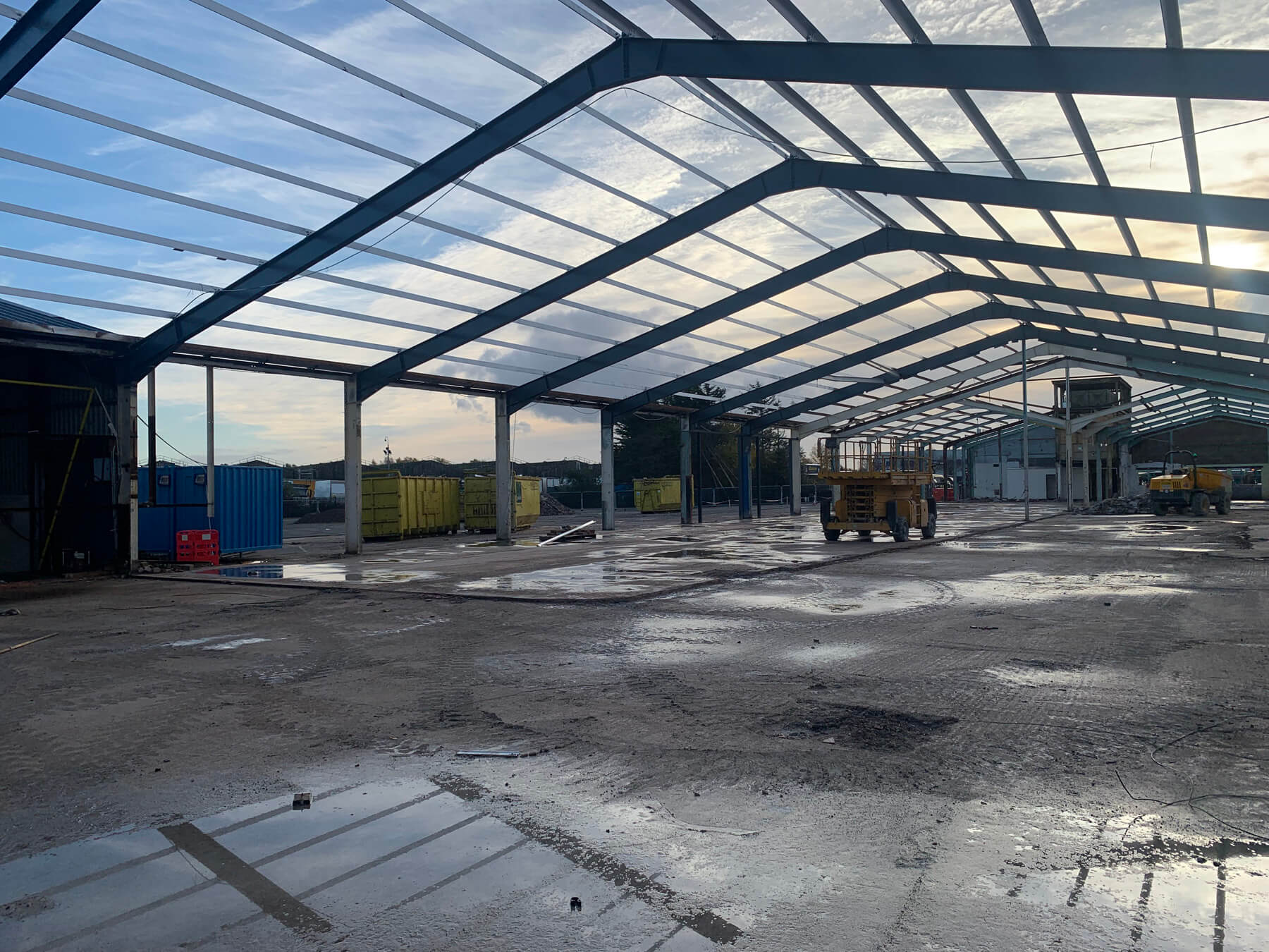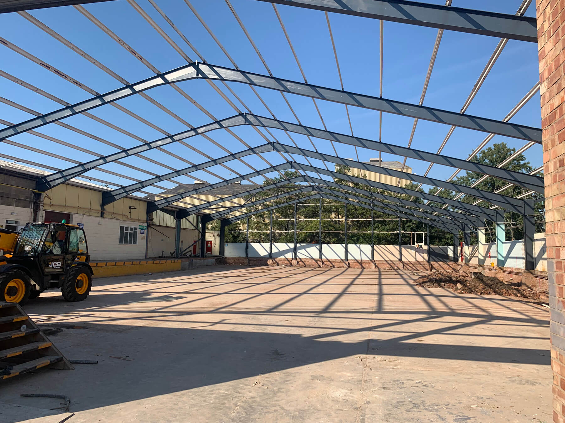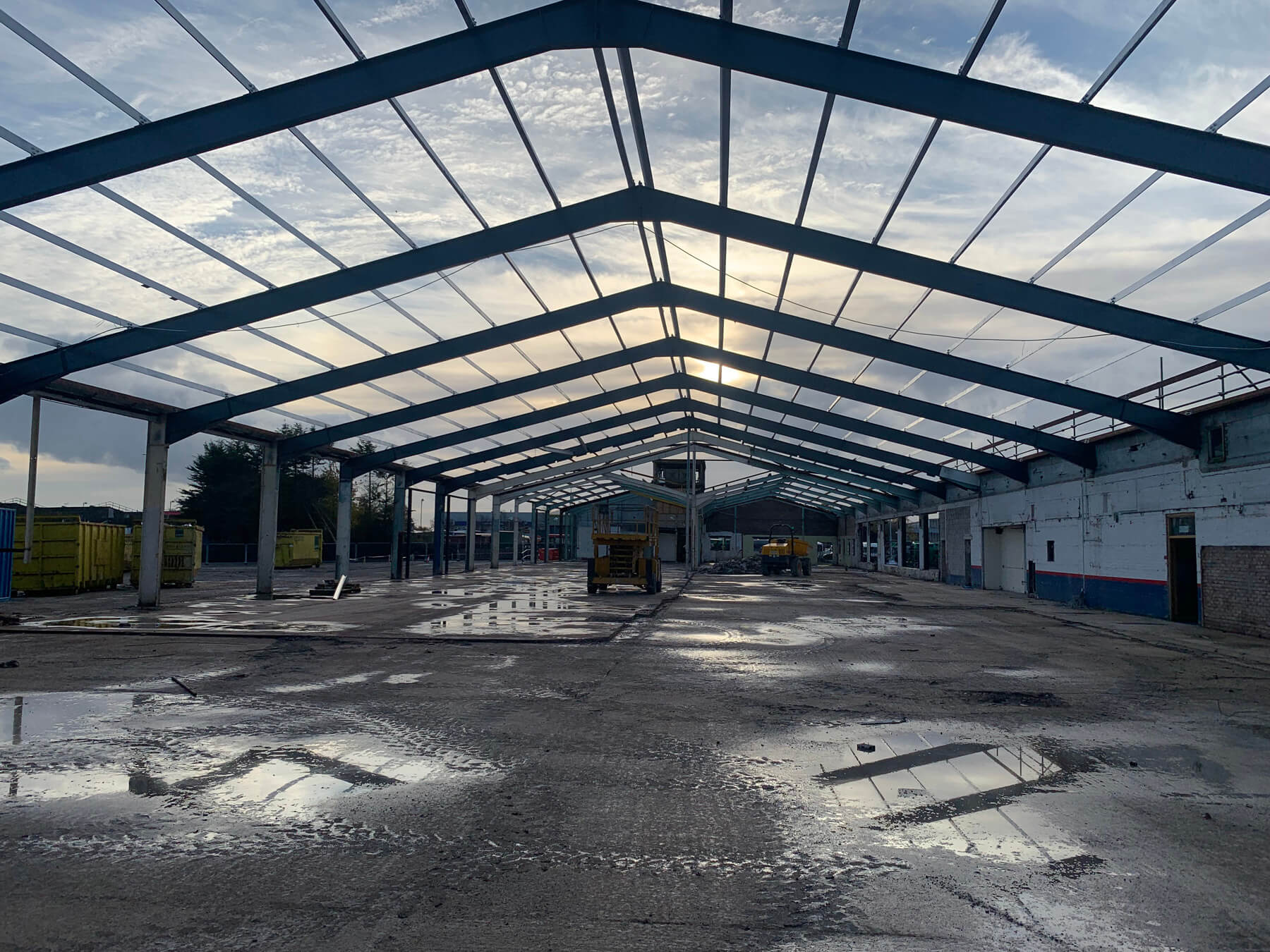 This started with the removal of all the old asbestos roof and cladding, installed an insulated composite panel to the roof including skylights and single skin sheets to the walls.