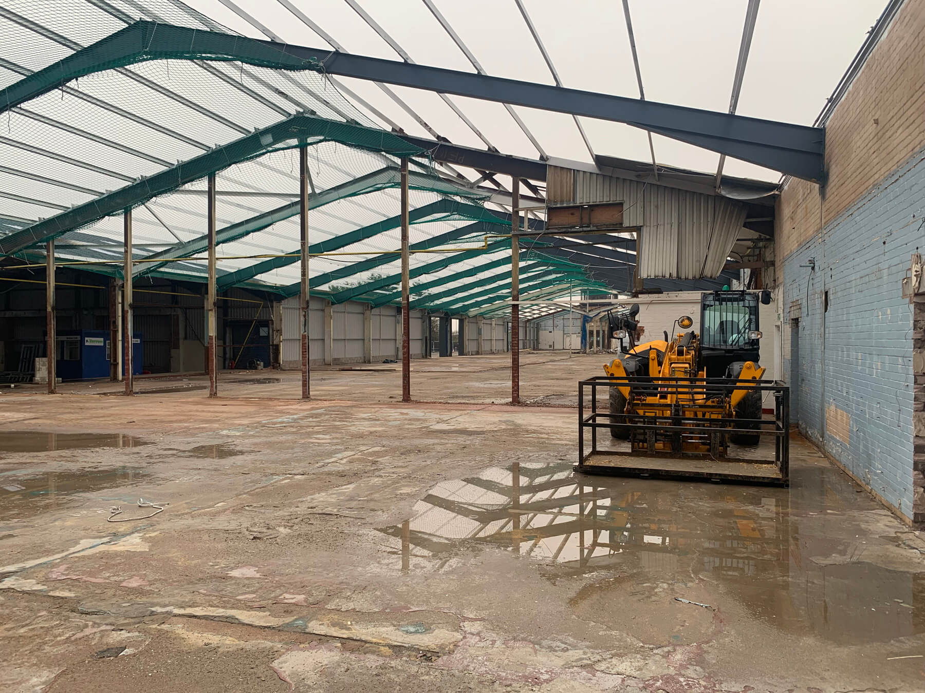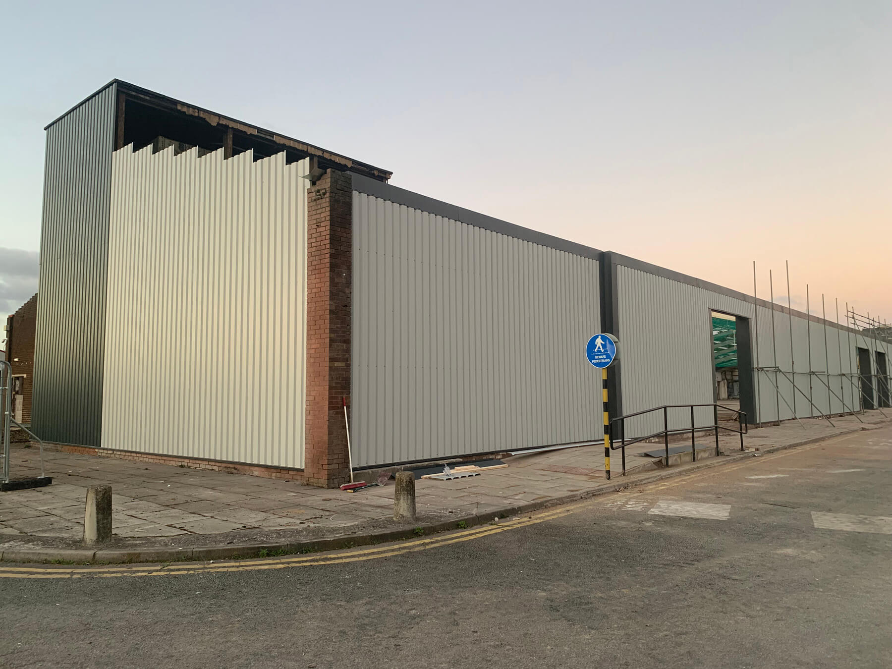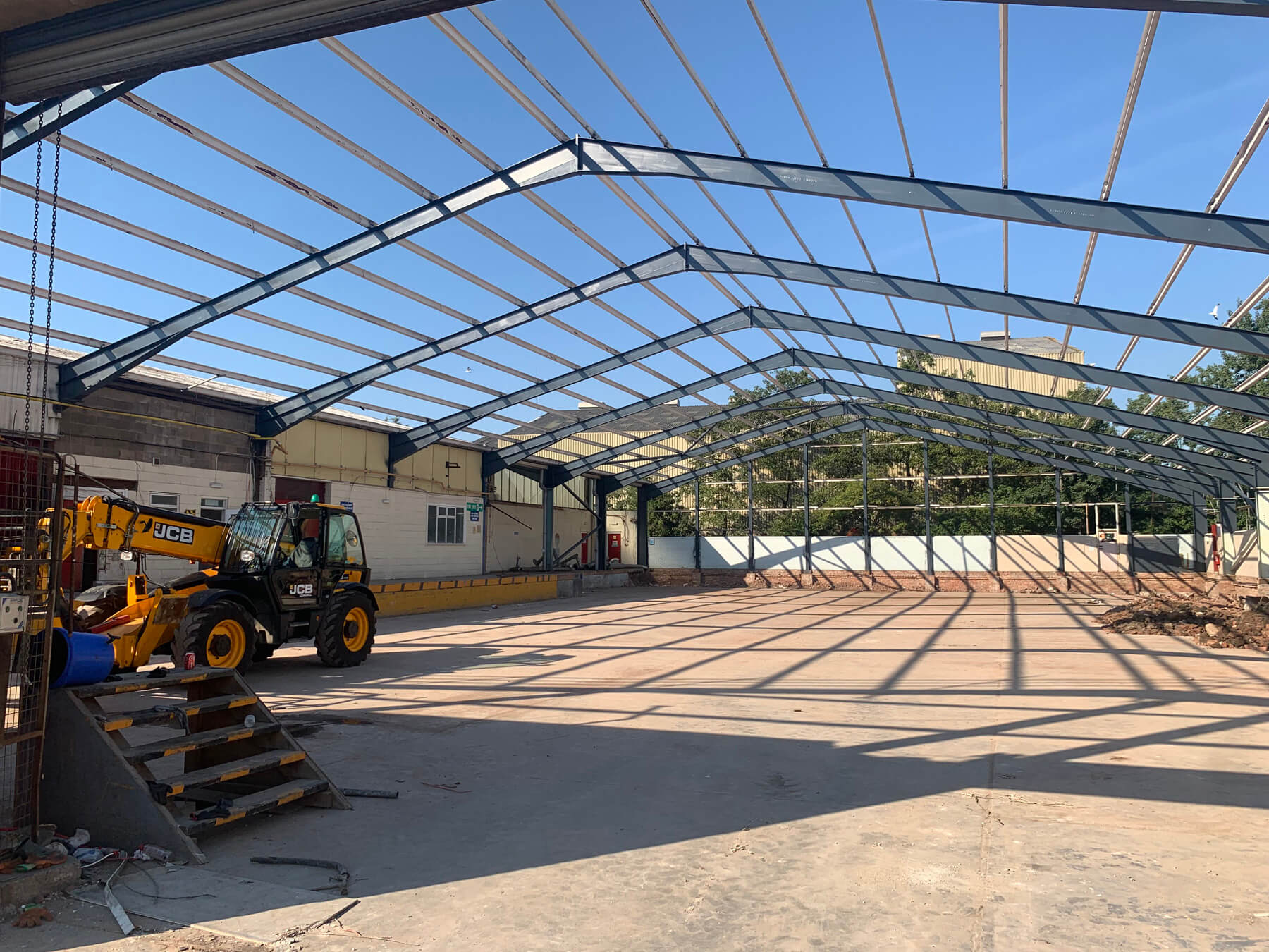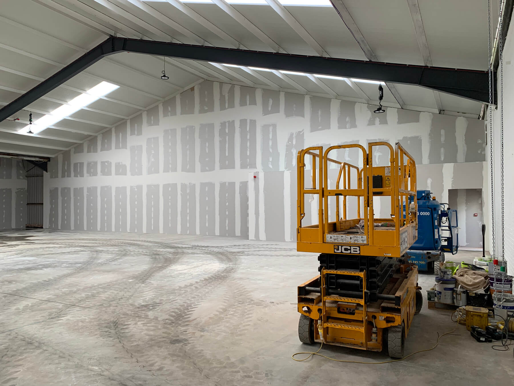 This started with the removal of all the old asbestos roof and cladding, installed an insulated composite panel to the roof including skylights and single skin sheets to the walls.