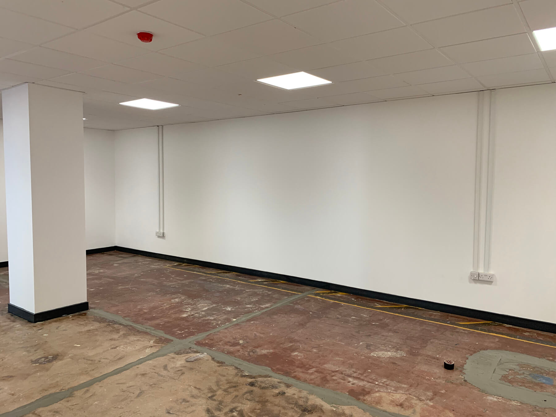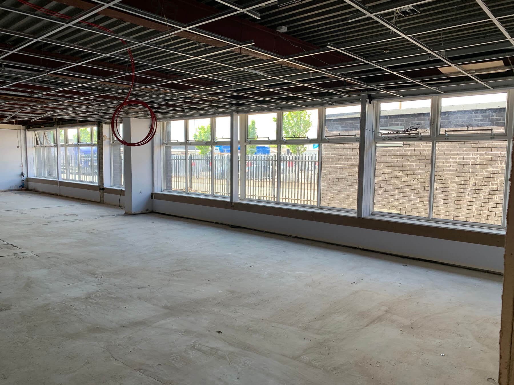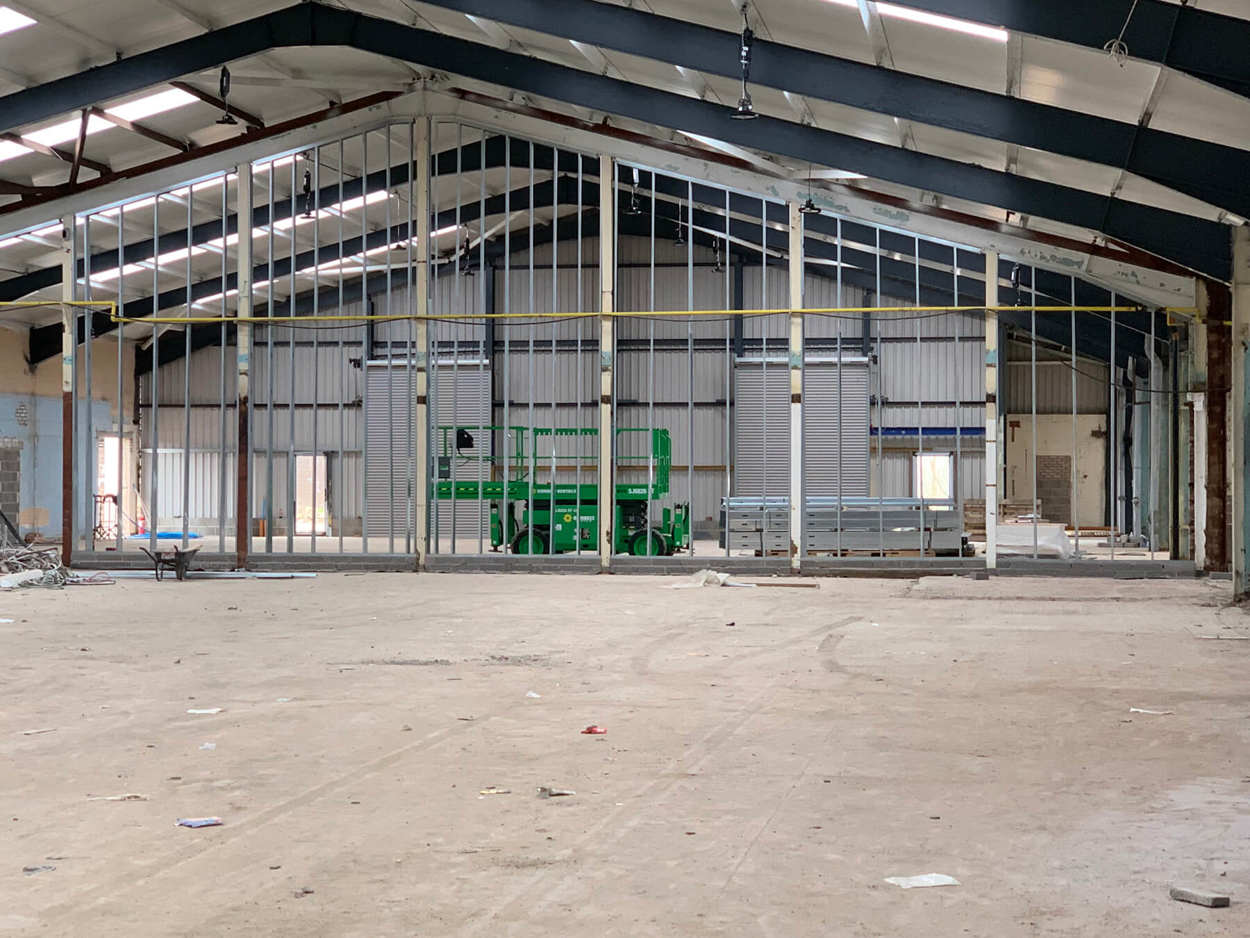 The internal work started with stripping out all mechanical and electrical to get the warehouse back to a bare shell. We painted all existing steels and built new jumbo stud walls to segregate each unit.