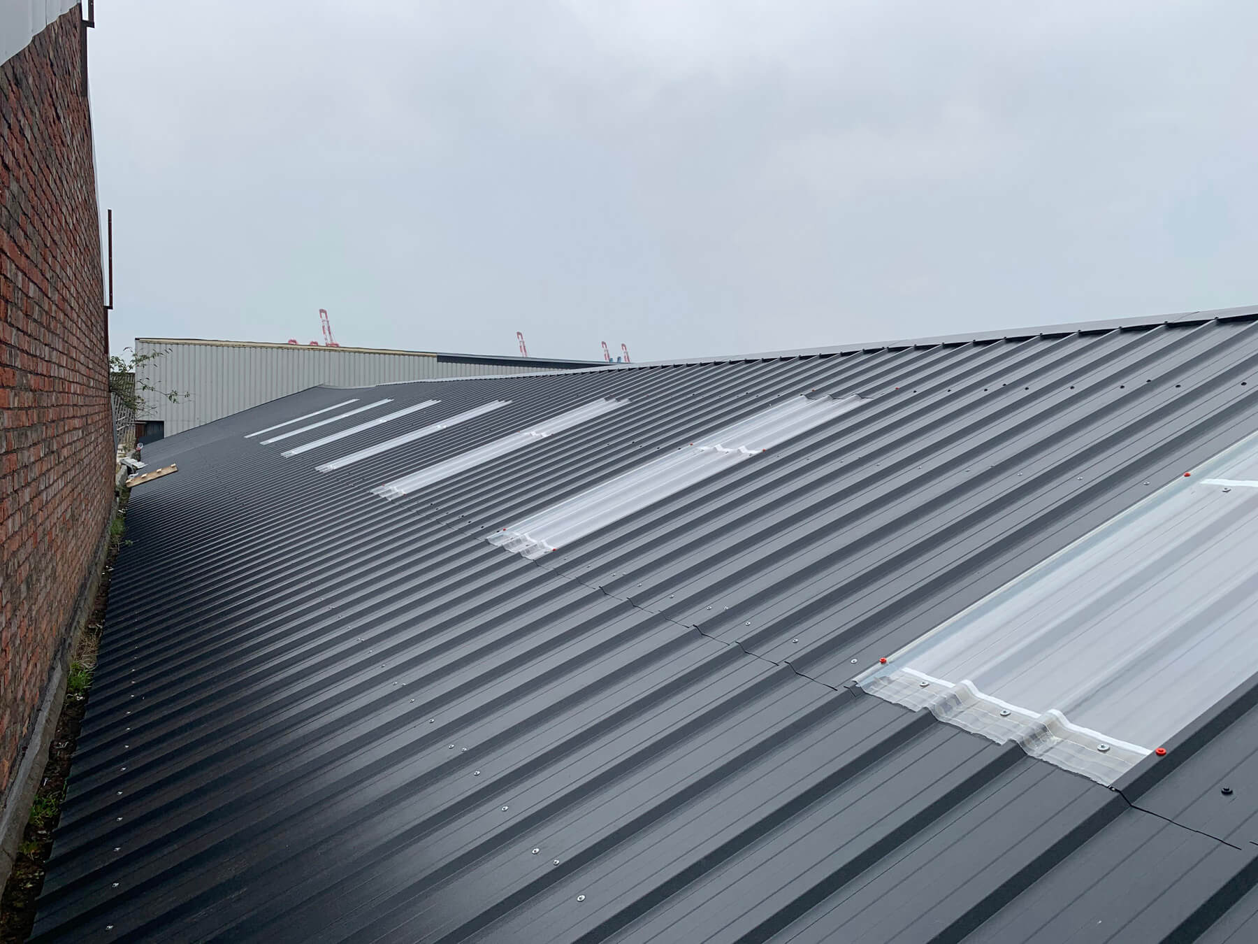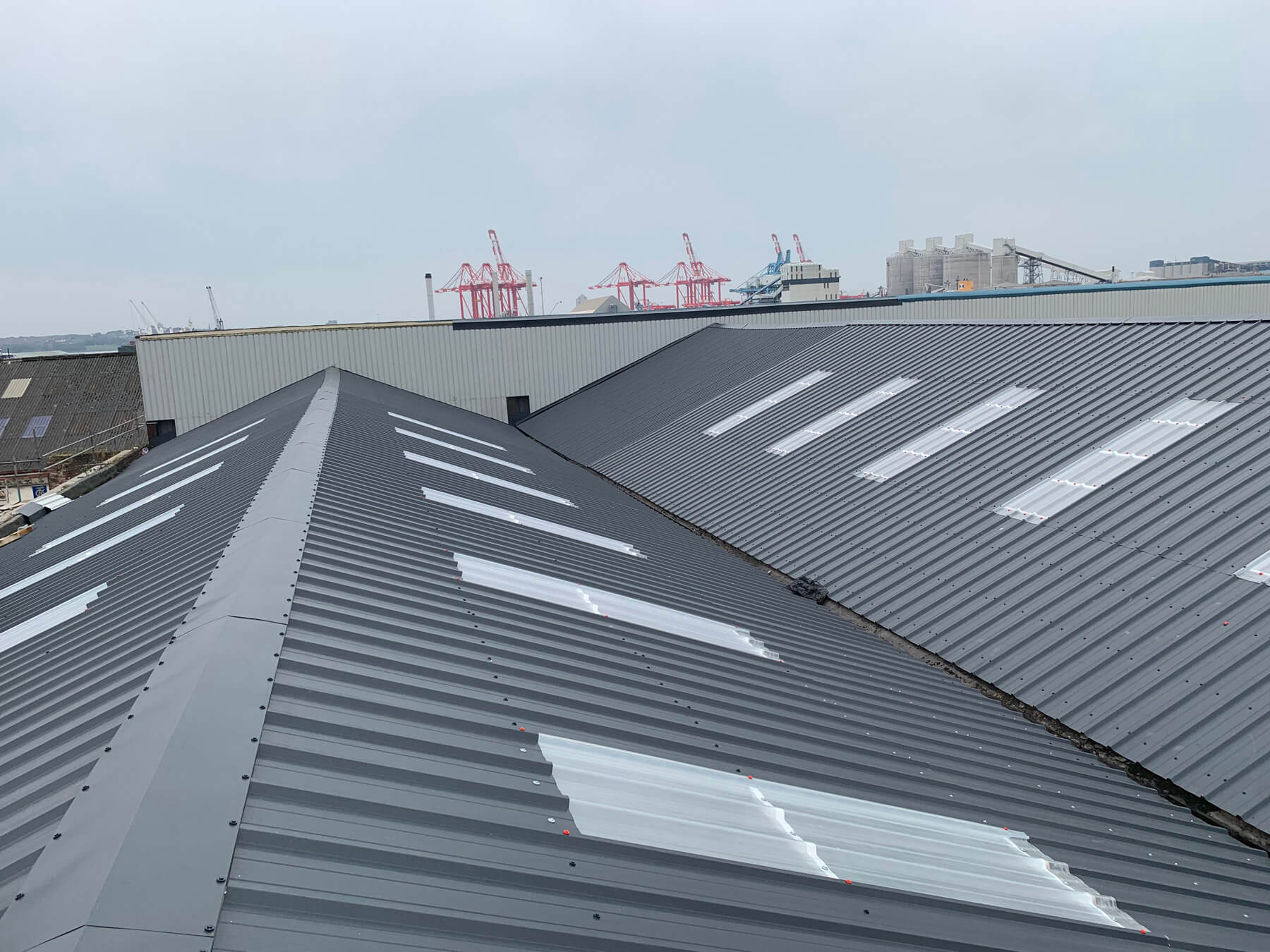 This started with the removal of all the old asbestos roof and cladding, installed an insulated composite panel to the roof including skylights and single skin sheets to the walls.