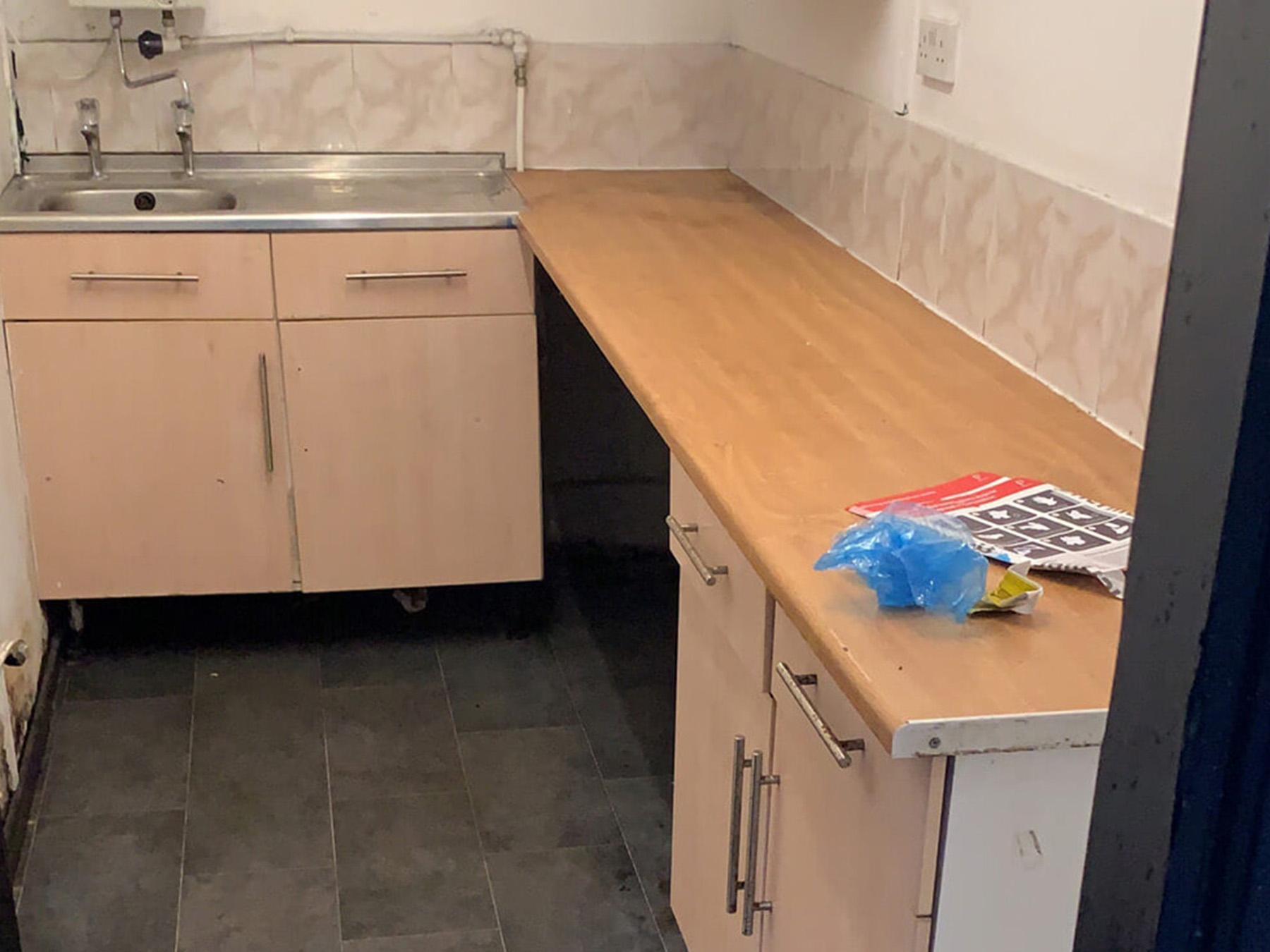Stripped out old kitchen and bathroom area and replaced with a new updated kitchen and bathroom area.